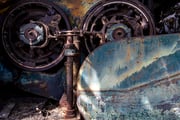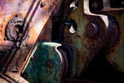 Die Halbinsel von Calamita wurde zur Blütezeit des Bergbaus richtiggehend durchlöchert. Hauptsächlich wurde hier Magnetit abgebaut. Erste Zeugen dieser Periode zeigten sich schon bald in Form eines abbruchreifen Gebäudes rechts der Schotterstrasse und zahlreichen, wie ausgestellten, aber vor sich hinrostenden Bergbaumaschinen. Wir waren sofort fasziniert. Ich war besonders vom schweren Gerät angetan, dem Wind und Wetter bereits beträchtlich zugesetzt hat. Im Prozess der Vergänglichkeit verwandelt die Natur selbst Blech und harten Stahl in zauberhafte, sich stetig verändernde Farb- und Formenwelten. Einige davon habe ich in einer kleinen Serie festgehalten.